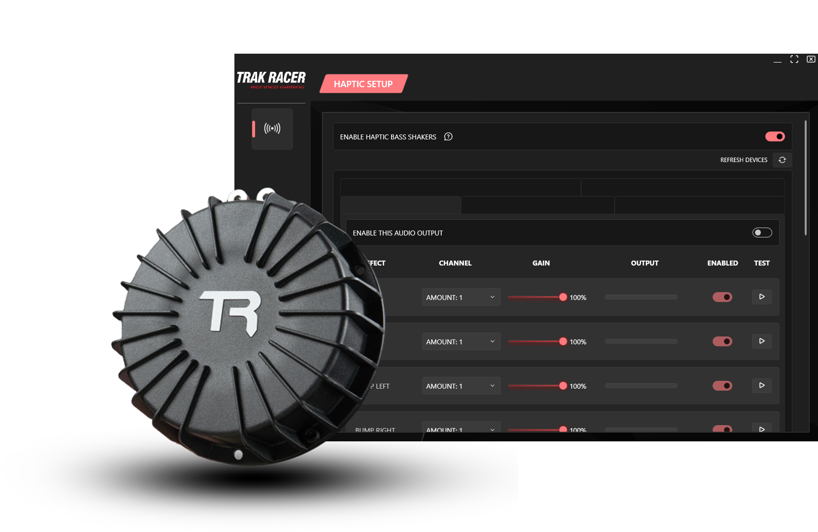 La parte inferior del TR-BSA-100 está recubierta con una capa de material amortiguador de vibraciones, de modo que solo recibas la retroalimentación en los lugares que realmente deseas. A diferencia de los subwoofers tradicionales que mueven el aire y pueden perder fuerza y precisión, nuestros transductores táctiles mueven masa real, lo que garantiza una inmersión táctil que es a la vez potente y precisa.